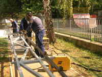 Szerkezetlakatosok hegesztenek a Regionális Képzőközpont udvarán. Többek között ez az a hiányszakma, amit tanulhatnak azok az emberek, akik a válság miatt veszítették el állásukat.