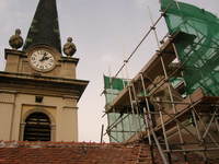 Még augusztus végén kezdődtek meg a restaurálási munkák, a főhomlokzaton található Szent Péter és Szent Pál, valamint a Hit-Remény-Szeretet allegórikus szoborkompozíciókon. Módi Péter restaurátor elmondta: könnyen faragható, alakítható csatári mészkőből készültek az alkotások, amelyeket az elmúlt kétszáz év időjárása, valamint a II. világháborús bombázások is alaposan megrongáltak. Most különféle eljárásokkal helyreállítják, kijavítják a hibákat, sérüléseket és konzerválják a szobrokat. A restaurálás körülbelül 20 évig ad védelmet az alkotásoknak.