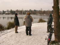 A hideg idő ellenére ma is voltak horgászok, akik a Csónakázó-tónál próbálták kifogni az ünnepi asztalra kerülő halat. Pontyot és süllőt szeretnének karácsonykor tálalni, de kapás most nem nagyon van.