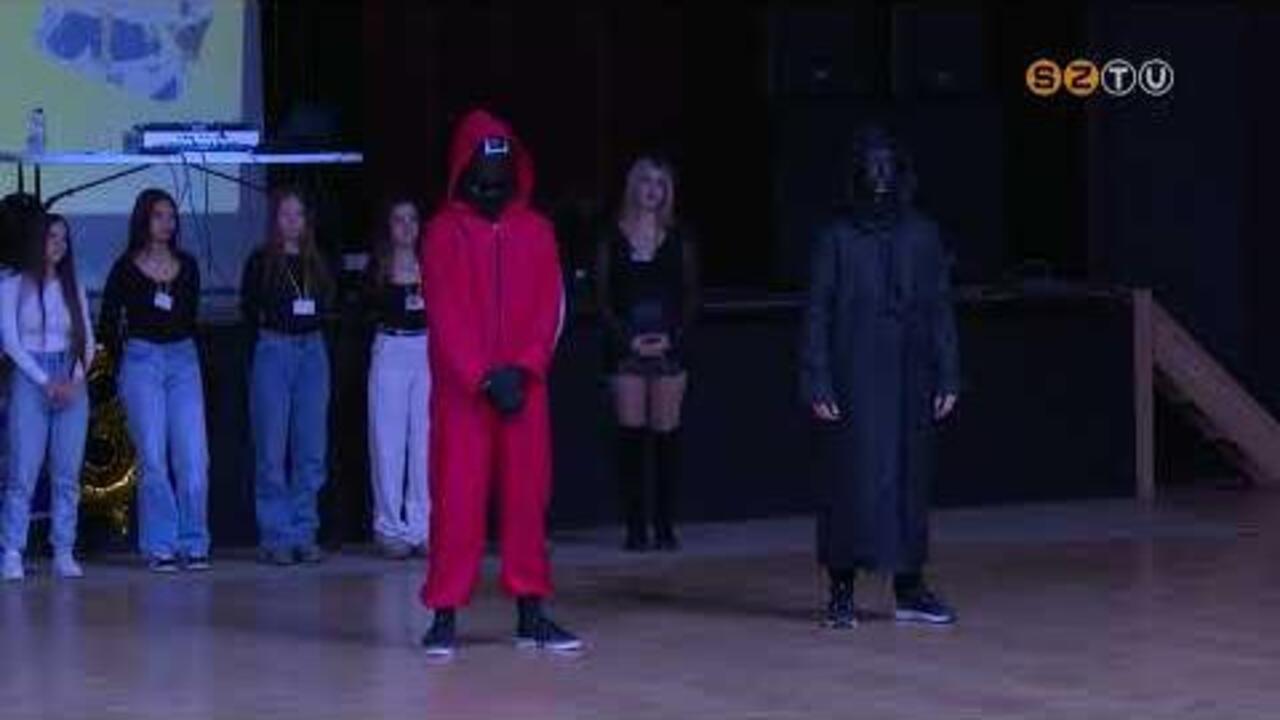 A népszerű Netflix sorozat, a Squid Game szereplőiként jelentek meg a városi diákönkormányzat vezetői a gólyaavatón részt vevő osztályok előtt, így ismertették a szabályokat.