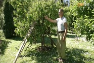 Csereszenyefákat döntött ki az erős szél Rapali Márton parkeredei kiskertjében a hétvégén. Teljesen meghajolt a törzsük, valószínűleg a gyökerük is megsérült. A vihar leverte a félig érett szemeket, a fán alig maradt valami. Ez a különösen értékes, oltványokkal teli fa is kifordult a szélben, a termése tönkrement. Az egész kiskertben alig maradt leszüretelhető gyümölcs.