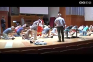 A zenészek előbb egy oktatófilm, majd Köcse Tamás vezető mentőtiszt útmutatásai alapján sajátíották el az éeletmentő beavatkozás lépéseit a Bartók-teremben. Az együttes tagjai stílusosan zenére, Strauss Jubileumi üdvözlet című kompozíciójának ütemére végezték a mellkaskompressziót.