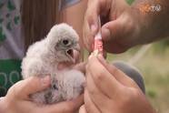 Az áramszolgáltató munkatársai vették ki az öt pelyhes kis fiókát a költőládából, hogy a szakemberek elhelyezhessék rajtuk a későbbi azonosítást segítő gyűrűket.
