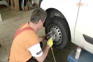 Erre a céges autóra most teszik fel a nyári gumit. (06:34 első) A flottás autók miatt a műhely már teljes kapacitással működik: a gumicsere-szezon elindult.
