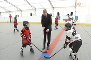 Puskás Tivadar polgármester végezte el a kezdődobást a Pingvinek Jégkorong Klub utánpótlás bemutató mérkőzésén. Ezzel a meccsel ünnepelte az egyesület az Oladi iskola udvarán, a régi salakos pálya helyén felépült új, speciális műanyagburkolattal ellátott, sátorral fedett játékfelületet.