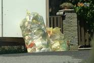 Sárga zsákok szegélyezik ezt az oladi utcát. Itt is, ahogy a város nagy részén, havonta egyszer ingyen viszik el a külön bezacskózott háztartási csomagolóanyagokat. Ez az asszony minden hónapban él a lehetőséggel, hol több, hol kevesebb ilyen szemét gyűlik össze nála.