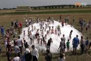 Hatalmas habparti csábította pancsolásra a gyerekeket a lukácsházi focipálya mellett, de