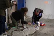 "Gézzel több rétegben, ragasztóanyaggal leragasztjuk, ez egy jól bevált darab, mert elasztikus marad, és akár még felgöngyölítve is, mint a szőnyeget, mert engedi magát hajlítani."