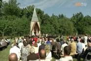 Több százan gyűltek össze a Káld-Hidegkúti vadászház mellett, hogy részesei legyenek a Kisboldogasszony kápolna avatásának.