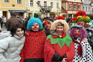 A Fő térről indult a farsangot temető maskarás menet. A munkahelyi csoportok minden évben mást és újat találnak ki a turistákat is vonzó mulatságra. A főszervező idén Vajákos Piriként bábáskodott a rendezvényen.