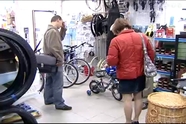 A fogyasztóvédők vásárlóként érkeznek ebbe a Fő téri kerékpáros szakboltba. Gyermekbiciklit kérnek.Alaposan megvizsgálják a kis biciklit. Azt nézik, kellően leburkolta-e a gyártó a lánckereket, nincs-e a kerékpáron olyan éles, vagy hegyes alkatrész, ami veszélyeztetné a használója biztonságát. Az sem mindegy, milyen távolságra van a kormánytól a kézifék karja, és milyen a kormány kialakítása.