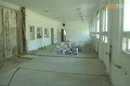 Összesen 29 köbméternyi törmeléket szállítottak el innen az elmúlt hetekben, ez az utolsó adag. Ez a bejárat megmarad, és a novemberben esedékes nyílászárócsere keretében megszépül majd ez az ajtó is. Bár étkező kialakításával szeptemberre végeznek a szakemberek, de a berendezés cseréjére csak később, várhatóan további képviselői támogatásból kerülhet sor.