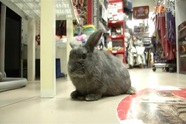 Ez a kis nyuszi nem keres már gazdit, hiszen boldogan él közös háztartásban egy kutyával és egy macskával. Itt az üzletben, a polcok között is nagyon jól érzi magát.
