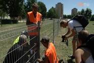 A Perint parton éppen a kutyafuttató kerítésének a felállításán dolgoztak a hajléktalan közmunkások, amikor Puskás Tivadar polgármester és Koczka Tibor alpolgármester felkereste őket.