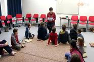 Holle anyó meséjét hallgatják a Bercsényi-iskola negyedikesei az idei Gyermek Kulturális Hét egyik rendezvényén. A magyar kultúra napjához kapcsolódó rendhagyó irodalom- és nyelvtanóráknak hagyománya van, most csak a helyszín új, hiszen az AGORA Művelődési és Sportház ad otthont a programnak