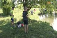 Bot, horgászszék, csali, vödör, merítőháló - a horgászathoz szükséges kellékeket pakolják a buszból a táborozó gyerekek az Abért-tónál, ide kirándultak csütörtökön délelőtt. Az egyes tó Gyöngyös-patak felőli partszakaszát foglalták el, segítők mutatták meg nekik, hogyan kell csalizni és bedobni.