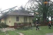 Erre a családi házra kora este zuhant rá a fa. A bent tartózkodó család még ébren volt, amikor áttörte a födémet a fa. A kárelhárításban a szombathelyi hivatásos és a helyi önkéntes tűzoltók segítettek. Az áramellátás 15 ezer vasi családnál szünetelt, az elektromos hálózat megjavításán több megye szakemberei dolgoznak.