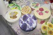 Készülnek a levendulamintás szalvétatartók - dekupázs technikával dolgoznak a karitász munkatársai, most már mintadarab nélkül önállóan, illetve egymást segítve. A foglalkozássorozat jó alkalom a kreatív közös munkára és a tanulásra.
