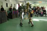 A mai napon egy kis lovagi torna-féleséget szerveztünk, olyan céllal, hogy a gyerekeket ki tudjuk mozdítani a pc-k, a tabletek és az okostelefonok mellől, és ne csak ott lássák, hogy milyen egy küzdelem, hanem lássák valójában, milyen az, amikor egy full contact vagy esetleg egy pontozásos verseny megy. 01:11