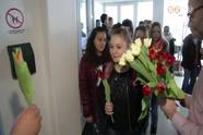 A gyár fiatal mérnökei nőnap alkalmából egy-egy szál virággal is kedveskedtek a Lányos nap résztvevőinek.