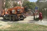 Egy speciális munkagéppel zuzalékot szórnak a gödrökbe ebben a belvárosi parkolóban. Korábban a lakók panaszkodtak az itteni áldatlan állapotok miatt. A karnevál idején várhatóan telítettek lesznek a parkolók, ezért igyekeznek előtte rendbehozni azokat. A SZOVA a programok helyszíneire vezető utakon is dolgozik ezekben a napokban.