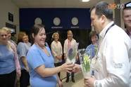 Az egyik szombathelyi nagyvállalatnál műszakváltáskor lepték meg az urak hölgy kollégáikat.