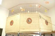A játékteret egy galériával növelték meg. Erre egy lépcsőn lehet fel- és lejutni, ami a hajószintek közötti közlekedést idézi. Az ablakok alatt egy hempergőt alakítottak ki, ahol az eltérő igényű óvodások pihenhetnek napközben. Egy élménykonyha is helyet kapott a szobában, ez az életre nevelésben lesz az óvónők segítségére. Emellett a bútorok, a textíliák és a kiegészítők is a matrózbirodalom hatását keltik. S hogy mi a kicsik kedvence?