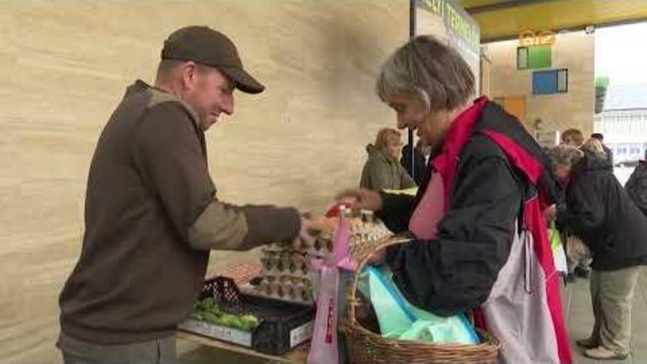 Zamatos őszi gyümölcsöket árulnak a termelői piacon: van alma, körte, szilva és rengeteg friss zöldség is. Nagy sorok állnak az árusok előtt, többen innen szerzik be a lekvárnak, süteménynek valót.
