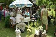 Egymás után érkeznek az idős emberek a Rózsafa utca egyik kiskertjébe. A vártnál is többen jöttek, de a házigazdáknak ez egyáltalán nem okozott gondot, bőven jutott pogácsa, és friss gyümölcs is a vendégek számára.