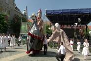 A karneváli forgatag egyik legfeltűnőbb párosa a Majoros Gyula bábtervező által megálmodott és megalkotott, Szent Mártont és a koldust ábrázoló két óriásbáb volt. A hatalmas figurák a felvonulás útvonalán is végighaladtak, de a Fő téren egy önálló produkcióval is megörvendeztették a karneválozókat, amelyet Szent Márton Köpenye - Jelenetek egy utcai spektákulumból címmel Kovács Géza rendezett.
