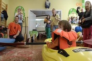 Vizitúráznak a gyerekek a Weöres Sándor Óvodában. Igaz, a kenuk ezúttal szárazföldre, a csoportszoba padlójára kerültek. De a kicsik így is mosolygós arccal és persze izgatottan szálltak a hajókba. Lapátot vettek a kezükbe, mellényt húztak és képzeletben már sebes folyókon haladhattak.