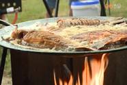Kicsit odébb forró vaddisznózsírban keszeg pirul és halászlé rotyog a kondérban.