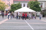 Ennél a Fő téri pavilonnál nemcsak a hétvégi programokról, hanem Szombathely turisztikai kínálatáról is tájékozódhatnak az érdeklődők.