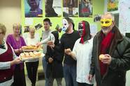 Farsangi fánkot készítettek a résztvevők - ezzel várták (00:45 körültől) az újságírókat is. Az édesség gyorsan fogyott: a fiataloknak nagyon ízlett a szép szalagosra sikerült finomság.