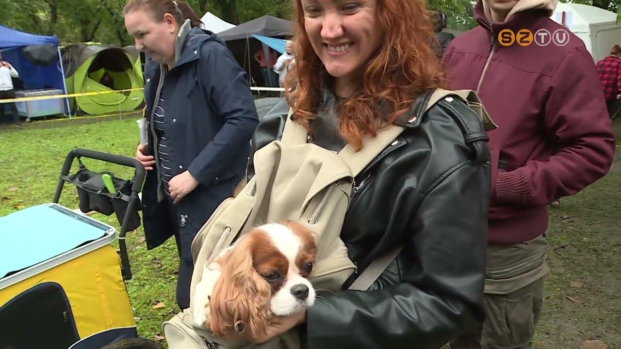 Ezt a kutyust ölben cipeli gazdája, hogy ne legyen sáros a versenyig, ez a két eb pedig esőkabátot kapott. Hosszú szőrét féltik ennek a másfél éves kan border collienak, sátorban várakoznak. Freddy már háromszoros champion.