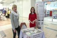 A gyermekük után járó adókedvezményről tájékoztatja éppen a NAV munkatársa az egyik szombathelyi plázában ezt a fiatal párt. A vásárlókat meglepte, hogy a hivatal itt is megjelent, hogy információkkal segítse az adózókat.