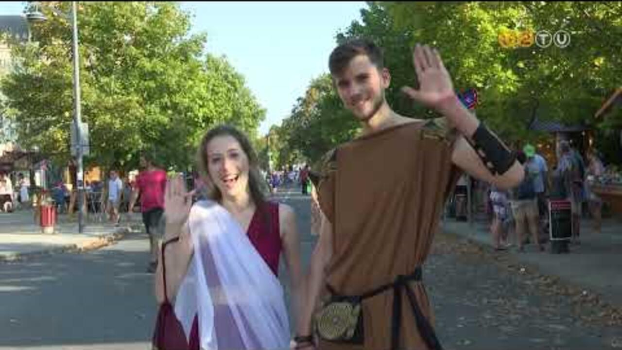 Gaia és csók Isis istennő oltáránál. Római kort idéző esküvőt mutattak be az autentikus helyszínen. Mellette a Borok utcájában és a Sörtéren pihenő karneválozók próbáltak a hétvégi hőségen túljutni a kézműves italspecialitásokkal. A zsidó udvarban különleges zenékkel kedveskedtek a közönségnek. Mindenütt római kort idéző viseletekbe öltözött embereket láttak a messze földről érkezők. A szombathelyieknek már-már kötelező a tóga.