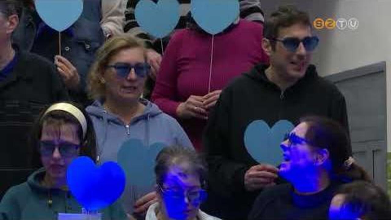 A hideg, szeles idő ellenére is sokan eljöttek az idén 12. alkalommal megrendezett szombathelyi kék sétára. A menet a Székesegyháztól, a Fő téren és a Király utcán át haladt egészen a sportházig. Az aulában az Esőemberke Alapítvány kórusa dallal fogadta a résztvevőket.