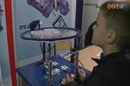 Ez egy pneumatikus játék, a tanulók készítették egyébként, a mechatronikai technikusok. Pneumatikával működik két munkahenger, ha ezzel a játékkal beletalál középre, akkor egy lufit felfúj az érdeklődő diáknak.