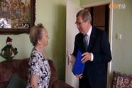 A 90 éves - ugyancsak Erdélyben született - Edenhofer Imréné Hencz Irma is korát meghazudtolóan mozgékony. A polgármesternek elmesélte, hogyan ismerkedett meg férjével, akivel 1945-ben Szombathelyen telepedtek le. Két gyermekük született, két unokája és egy dédunokája van. Sokat kézimunkázik, amire még annak idején az édesanyja tanította meg.