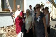 A nagy meleg ellenére szép számmal vállalkoztak a történelmi sétára a nagycsaládos találkozó résztvevői közül. A résztvevők a Megyeházától indultak, majd az Óperint és Kálvária utcákon keresztül haladtak a Kálvária templom felé. Hamza István arról beszélt az út során, hogy Szombathely idén ünnepli Szent Márton születésének 1700. évfordulóját - a későbbi Tours-i püspök 316-ban Savariában látta meg a napvilágot. A kilencállomásos Szent Márton Történelmi Sétaút a Kálváriától a Szent Márton-templomig vezet. Azokat a helyszíneket mutatja be, amelyek a város ókeresztény hagyományaihoz kapcsolódnak. Az egyes állomásokon lévő műalkotások Márton és Quirinus életének egy-egy epizódjára hívják fel a figyelmet. Az első állomáson Somogyi Tamás alkotásait, két bronz domborművet csodálhattak meg az érdeklődők. A séta a Szent Márton Látogatóközpontban ért véget, ahol Kiss Gábor régész tartott előadást a csoportnak.