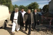 Jordán Tamás színházigazgató vezette végig az épülő színház területén az államtitkárt. A szerkezetkész épületben most is nagy erőkkel folyt a munka.