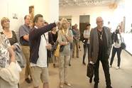 Laza, humoros tárlatvezetésen vehettek részt a Képtár látogatói - ezt Gálig Zoltán művészettörténész Takács Tiborhoz intézett szavai is bizonyítják. Pelczer Géza harmonikaszóval tette hangulatosabbá a rendhagyó bejárást. Réz András filmesztéta szerint mindig ilyen beszélgetős tárlatvezetéseket kellene tartani.