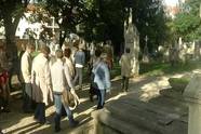 A másfél órás vezetett séta alatt mintegy félszáz helyen álltak meg: Orbán Róbert a síremléknél illetve mauzóleumnál rövid tájékoztatót tartott az érdekességekről, a hely- és művészettörténeti tudnivalókról.