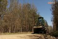 Megállás nélkül dolgoznak a munkások, a kivágott és feldarabolt anyagot ezzel a speciális rakodógéppel viszik ki az erdei út szélén kialakított depóba, onnan szállítják majd a kamionok a feldolgozó üzemekbe a fát. A munkálatokkal sietniük kell az erdészeknek, hiszen a jég ütötte sebeken keresztül egy gomba is támadja a faanyagot.
