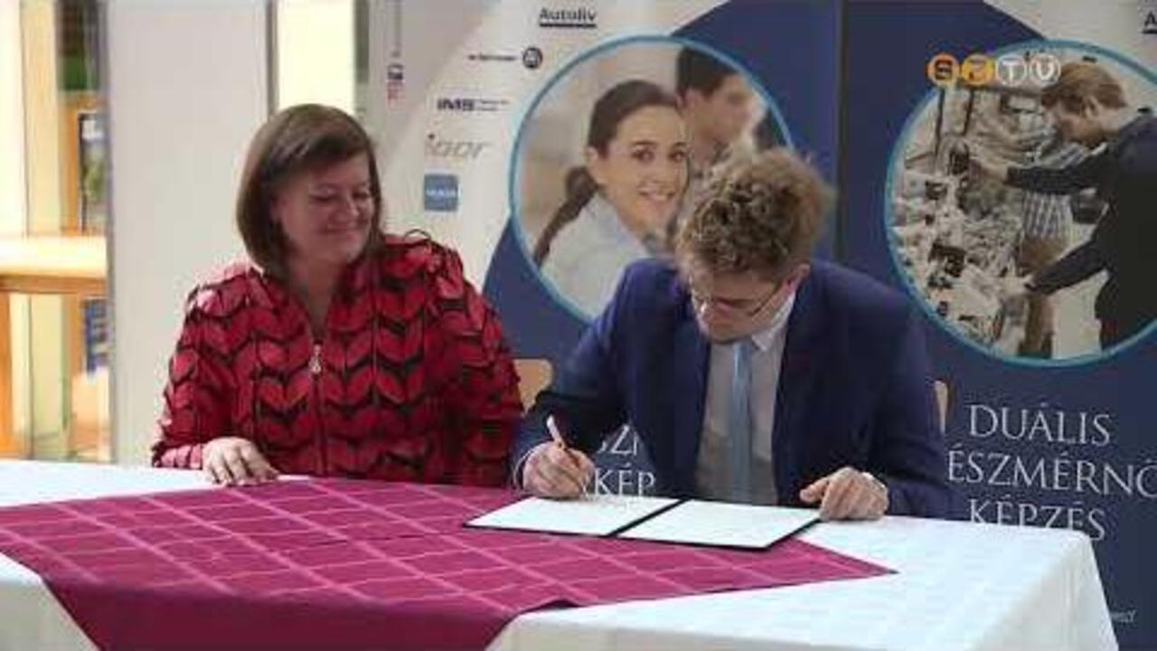 A köszöntő beszédeket követően a duális képzésben részt vevő hallgatók aláírták szerződéseiket a partnercégekkel: az Ames és az Opel 1, a BPW négy, a Schaeffler 18, a TDK 5 elsőévest fogad. A duális képzésben már az első félévben vállalati gyakorlaton vesznek részt a hallgatók, így a szakma mellett a munkakultúrát is megtanulják.