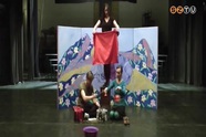 Egy jelenet az előadásból. A Mesebolt Bábszínház felvételeit látják. Ez az új darab, amely a hagyományos előadásokhoz képest szöveg nélkül igyekszik a gyerekekre hatni, érzésekkel, hangokkal, a minket körülvevő tárgyak felhasználásával. A bemutató szombaton lesz, de látták már bölcsődések.