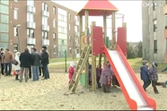 A Maros utcai óvodások mit sem törődtek a metsző széllel, vidáman vették birtokba az új játszóteret a lakótelepen.