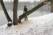 Így vágták a fákat csütörtök délelőtt a Csónakázó szigetén a Szombathelyi Parkfenntartási és Temetkezési Kft. munkatársai. Az egészségesek nem, csak a sétálókra veszélyes, beteg fák kerültek a fűrészek elé.