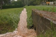 Még hétfő délelőtt is megduzzadt patakhoz hasonlított a vízelvezető árok Narda alsó részén.